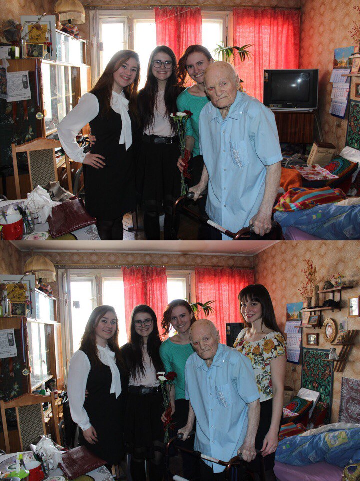 "Наш 99-летний собеседник,оказался таким бодрым, активным, с замечательной памятью и речью, пересказывая буквально дословно события Отечественной войны, много шутил и подбадривал нас," - делятся впечатлениями студенты-волонтеры.