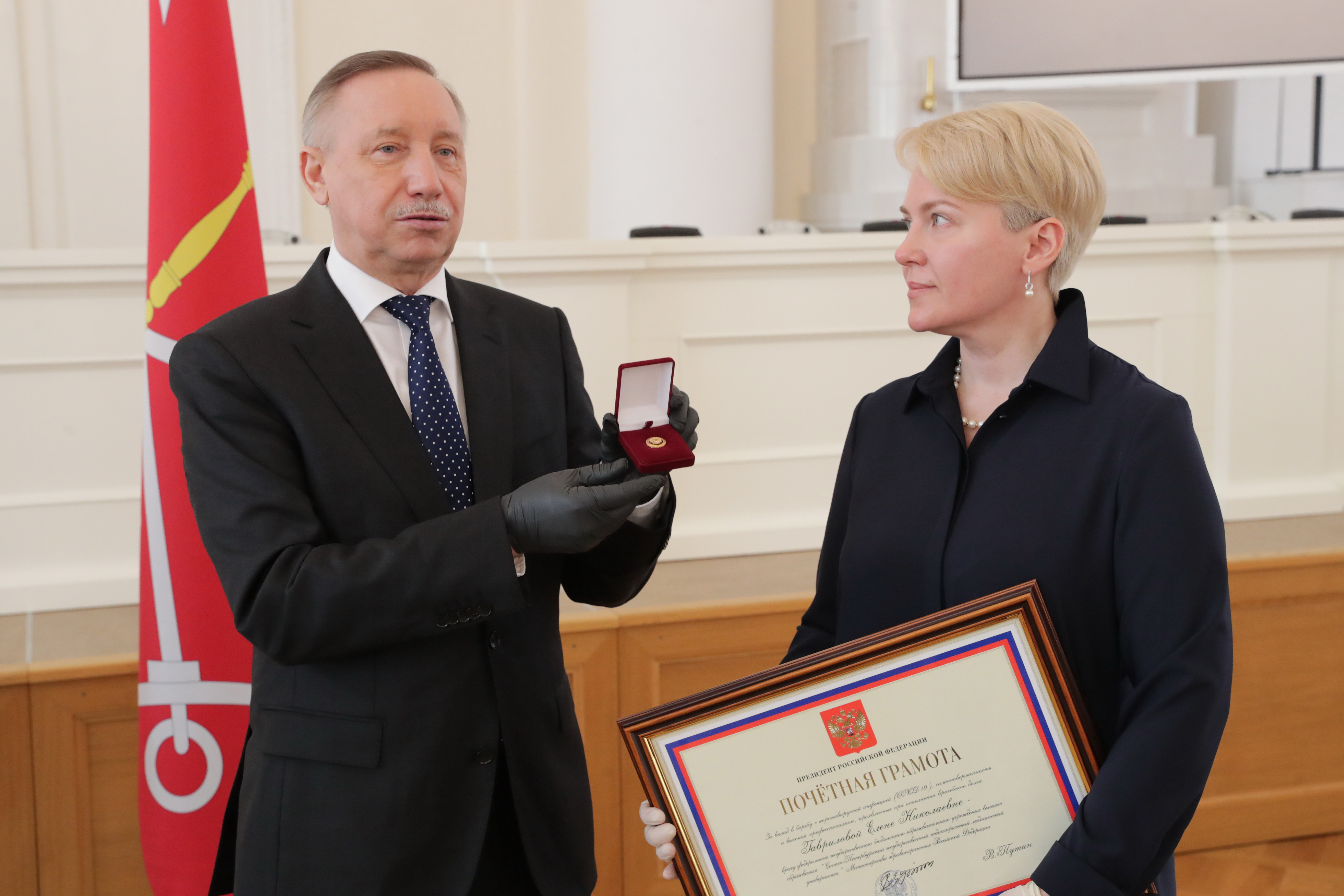 14 апреля Губернатор Санкт-Петербурга Александр Беглов вручил врачам и медицинским работника награды за вклад в борьбу с коронавирусной инфекцией