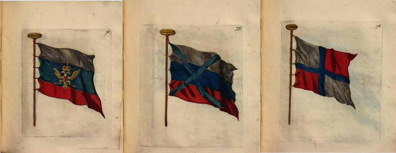 Российские флаги из книги «Новое голландское корабельное строение». 1699—1700 годы