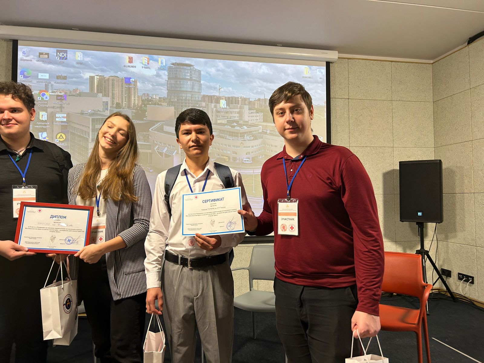 Педиатрический университет представляли 2 команды студентов-первокурсников из стран ближнего зарубежья, подготовленные при содействии деканата по работе с иностранными обучающимися преподавателями кафедры русского языка Ольгой Петровой и Антониной Дементьевой, а также ассистентом кафедры общей медицинской практики Полиной Панкратовой.