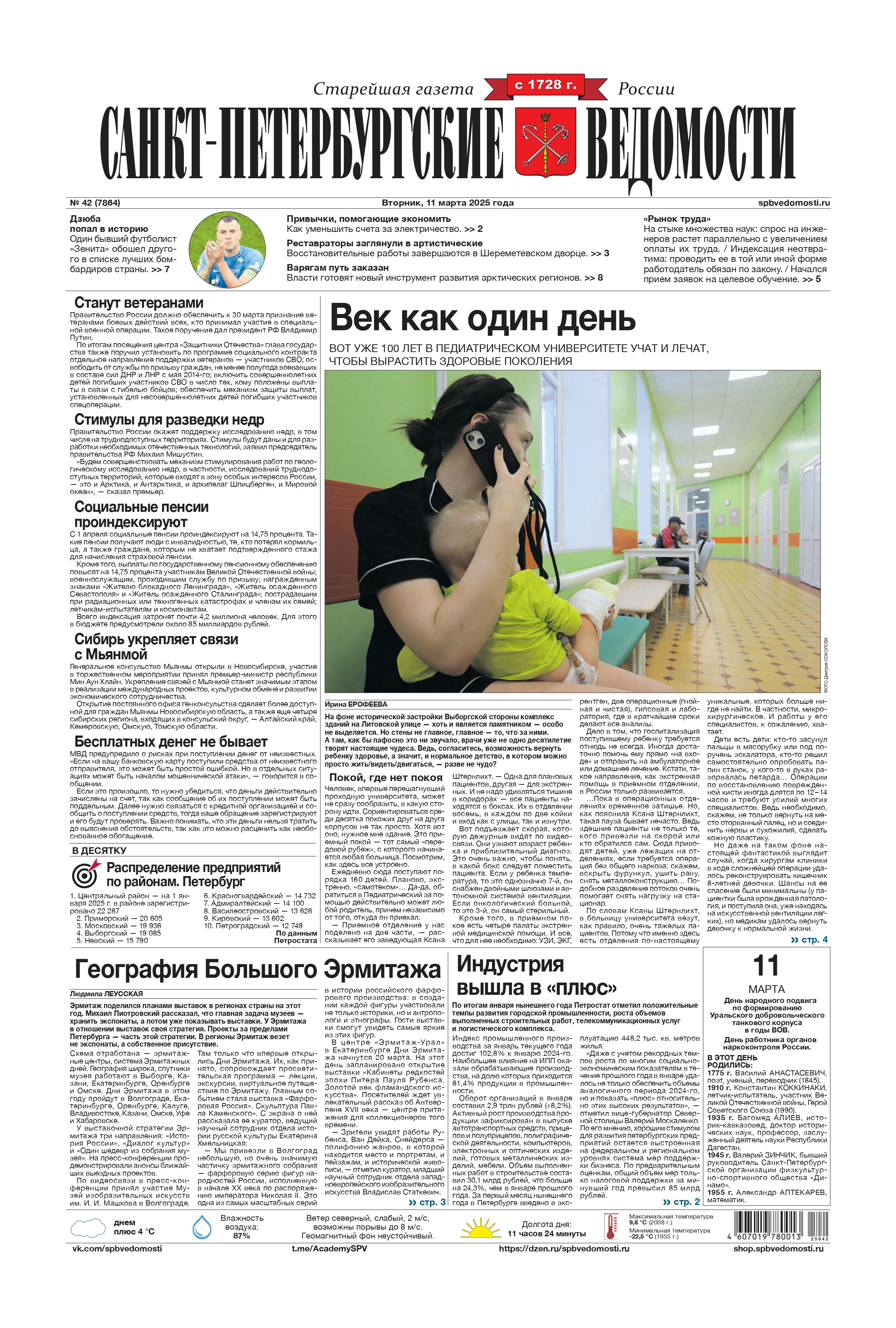 Весь нынешний год для нас юбилейный, год 100‑летия нашего университета. Но, говоря об истории, будем, конечно, намечать планы на будущее и подводить итоги, благо нам есть что «предъявить». Сегодня Педиатрический университет Минздрава России — это более 60 кафедр и полсотни отделений. Ежегодно здесь проводят 15 тысяч различных хирургических операций. Многие из них уникальны. За столетие в стенах университета подготовлены более 50 тысяч врачей, которые работают в 107 странах мира.
